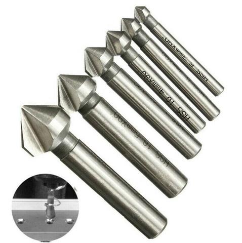 6pcs 3 बांसुरी 90 एचएसएस धातुओं टाइटेनियम तीन धार नाला Chamfering ड्रिल बिट सेट